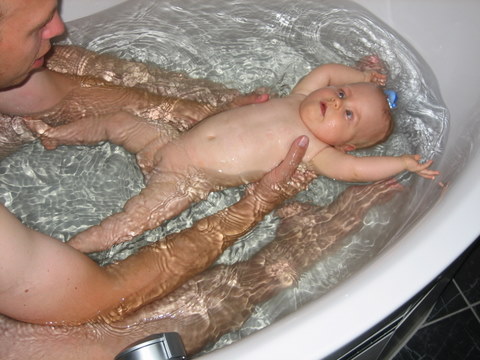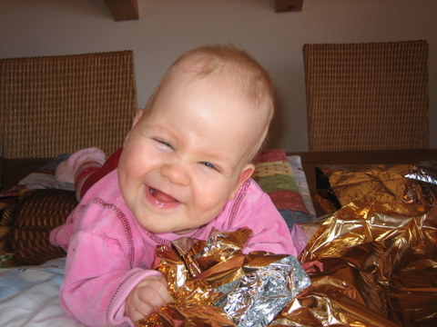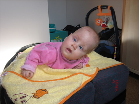 Jolina entwickelt sich prächtig: 5600g und 60cm. Sie isst mittlerweile mittags und nachmittags ihren Brei, liebt baden mit Papa und ist immer am lachen.