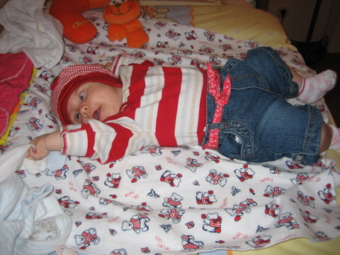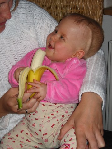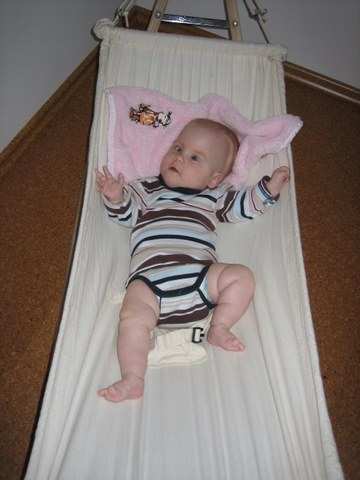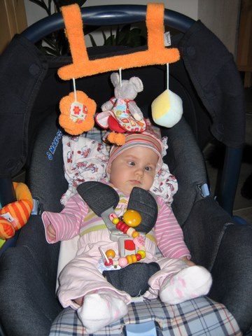 Jolina kann endlich selbst ihren Kopf halten und beginnt Dinge in die Hand zu nehmen und zu untersuchen.