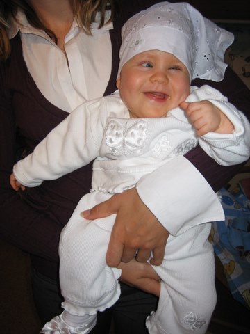 Am 12.10. war ihre Taufe. Sie wurde zwar im Krankenhaus mit Tim schon notgetauft, aber es war immer unser Wunsch wenn es ihr richtig gut geht, ein schönes Fest für sie zu machen. Es war ein wunderschöner Tag und wie immer an besonderen Tagen Sonnenschein und strahlend blauer Himmel, Tim war wohl auch da.
