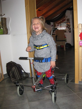 Und nun noch einen kurzen Bericht und ein paar neue Bilder bevor wir ins neue Jahr starten. Jolina geht’s im Moment einfach super! Sie findet immer mehr Freude am Sprechen und auch was das Essen betrifft, macht sie große Fortschritte. Sie hat es sogar kürzlich geschafft, die Gabel selbst in die Hand zu nehmen und in den Mund zu stecken. Die Stückchen werden immer Größer und sie experimentiert immer mehr. Heute am 20.12. haben wir nun eine bitterschwere Entscheidung getroffen. Nun ist es endgültig fix, Jolina wird im Herbst 2014 an beiden Hüften operiert, es gibt kein dran vorbei mehr, leider. Aber bis dahin haben wir gottseidank noch ein bisschen Zeit.