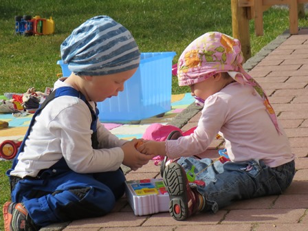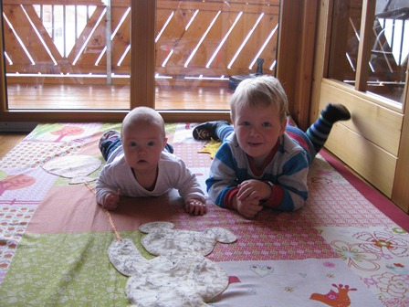 Tamino ist im Moment Jolinas aller bester Therapeut. Die Beiden können immer besser miteinander umgehen und Jolina versucht immer mehr Tamino nach zu plappern. Sie singen zusammen und klatschen sich in die Hände. Auch Kuckuck spielen ist sehr lustig, nur das Teilen…das klappt noch nicht so. Tamino ist übrigens der beste kleine und große Bruder, den man sich wünschen kann. Er spricht schon sehr viel und ist der Mama eine ganz große Hilfe. Und wenn er nicht gerade einen seiner Trotzanfälle hat, ist er echt zum Fressen. Und Romana ist sein ein und alles. Die wird immer beschützt und gestreichelt.