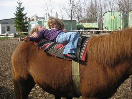 Am Mittwochnachmittag gehen wir nach wie vor zum heilpädagogischen Reiten. Auch wenn das mit ihrer Hüfte immer schwieriger wird und es von den Orthopäden her eine umstrittene Sache ist (mit luxierten Hüften). Wir merken, dass es Jolina gefällt, ihr gut tut und sie dabei keine Schmerzen hat. Sie freut sich immer auf Ihr GUKEGE (Schnuckele, ein Isländer). Sie kann mittlerweile schon selber Kommandos geben. DEEE für Steh und MAM für Komm, oder aufn Hals klopfen dann geht’s Schuckele auch wieder. Jolina freut sich tierisch, wenn sie die Kommandos geben darf. Also ich muss ehrlich sagen, dass ich nicht dran geglaubt hab, dass sie es versteht und dann noch umsetzten kann. Aber da hat mich meine Tochter wieder mal eines Besseren belehrt.