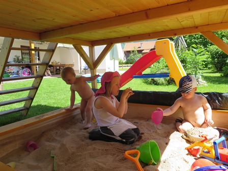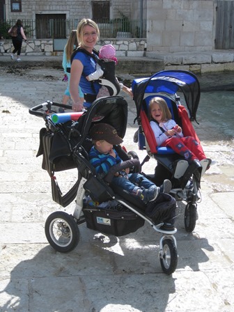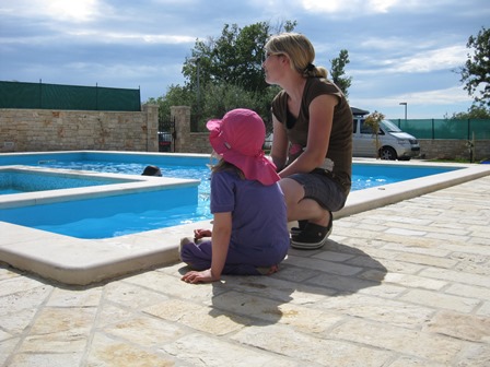 Ja und nach langem Überlegen und vielen Sorgen von Mama, haben wir es doch endlich gewagt und sind in den Urlaub gefahren. Wir waren Ende Mai das erste Mal im Urlaub und es war sehr schön. Wir waren in Kroatien und unser Bus war megarappelvoll. Wir haben schon überlegt ob wir mit Hänger fahren sollen, aber mit großer Dachbox gings dann schon. Jolina war echt klasse, sie war so relaxt und cool drauf, man hatte direkt das Gefühl als hätte sie schon ewig drauf gewartet endlich mal raus zu kommen. Tamino und Romana hats natürlich auch sehr gut gefallen. Dank des tollen Reisebettes hat es mit dem Schlafen bei Jolina supi geklappt(bzw. nicht schlechter als daheim). Und Mama und Papa hatten endlich mal Zeit abends mit Ihren Freunden zusammen zu sitzen und zu ratschen. Leider konnten wir nicht baden, da das Wetter zu kalt war. Aber nun wissen wir, dass es funktioniert und wir bald wieder in den Urlaub fahren können…Freu…