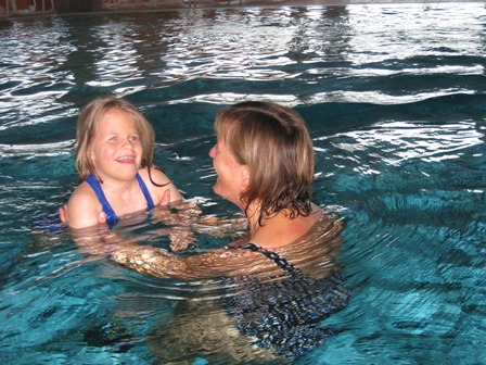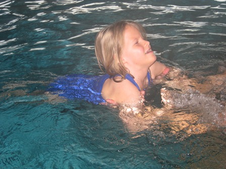 Wie wir ja schon öfters erwähnt haben, geht Jolina jeden Montag zur Schwimmtherapie in die Therme und macht dort eine gigantische Entwicklung. Sie würde am liebsten selbst losschwimmen, manchmal bewegt sie ihre Beine abwechselnd, aber ganz oft schwimmt sie wie eine Meerjungfrau mit Schwung übers Becken und Popo und wird vorne nur ganz leicht getragen. Sie genießt das warme Wasser und Ihre Beine werden dort immer ganz locker. Auch dort hat Jolina ein Ritual zur Begrüßung. Sie singt mit Frauke immer das gleiche Lied und sie fängt oft schon alleine damit an. Schwimmhilfen toleriert sie leider überhaupt nicht, sie muss immer gehalten werden, daher kanns auch mal sehr Schmerzhaft werden. Es gibt Tage oder Momente da zwickt Jolina ganz arg. Sie weiß, dass es weh tut, versteht auch dass sie es nicht machen darf, trotzdem ist es dann als könnte sie nicht aufhören.
