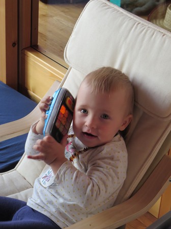 Es ist echt unglaublich was die Maus so alles versteht. Sie antwortet auch immer gezielter mit ÄHÄÄ (JA) und Nein. Oder A GAAAA (alles klar), antwortet sie auf die Frage: “Alles klar Jolina?“ „Wie geht’s Dir“? GUUU (gut). Auch das Aua ist ein ganz gezielt eingesetztes Wort. Entweder ihr tut wirklich was weh oder sie kündigt an, wenn sie jemanden gleich weh tun will. Buffy unsere Katze hat Jolina schon ab und zu gekratzt und das erzählt sie immer wieder BABBI AUA. Wenn sie getragen werden will oder auf den Arm genommen werden will sagt sie immer GAGI (tragen). Und das fordert sie im Moment sehr häufig ein. Wenn sie nicht mehr Essen möchte und man Ihr dann sagt, dass ist der letzte Löffel dann macht sie nochmal den Mund auf und wenn man sie dann fragt ob sie noch was möchte sagt sie NEIN, GA (gar…leer).Wenn sie müde ist oder sie weiß z.B. nach dem Mittagessen, dass sie jetzt ins Bett geht, sagt sie BITTE BETTI. Wenn sie etwas haben möchte oder wir ihr z.B. die Musik anmachen sollen, dann hält sie es in der Hand und sagt so lange ÄHÄÄ,ÄHÄÄ,ÄHÄÄ, bis sie bekommt was sie will ;-)