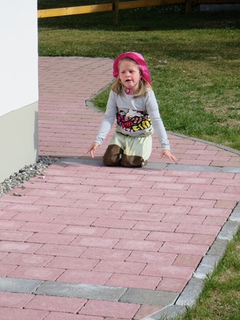 Ihr mittlerweile bester Freund nennt sich NÖÖÖNN Jolina fährt Rolli wie eine Irre, nicht einfach planlos drauflos sondern echt zielgerichtet, wir sind alle sowas von erstaunt. Nur leider ist auch dieses Hobby nicht ganz ungefährlich. Sie hat zwar einen Kippschutz nach hinten, doch wir sind auch immer dabei. Aber schwupps, einmal kurz nicht aufgepasst……und Jolina liegt auf der Nase. Sie ist mir nach vorne umgekippt, Gottseidank ist sie dann ins Gras gefallen und nicht aufs Pflaster. Trotzdem hat sie sich dabei ganz arg auf die Zunge gebissen und der Schock war bei allen riesengroß.