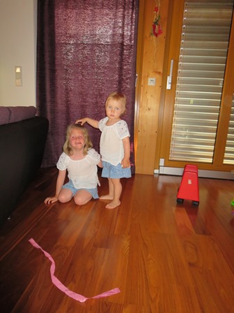 Ganz stressfrei haben wir es aber auch nicht wirklich hinbekommen. Jolina hat uns mal wieder geschockt und es ist genau das eingetroffen wovor wir immer am meisten Angst hatten. Jolina hatte einen Krampfanfall und wir haben es nicht bemerkt. Am 26.8. hab ich Jolina länger schlafen lassen, da sie abends ewig nicht eingeschlafen ist. Gegen halb 9 wollten Tamino und Romana sie dann wecken, aber sie hat nicht reagiert. Ich hab sie dann umgedreht und sie lag in Ihrem Erbrochenen und Blut. Man konnte im Gesicht sehen, dass sie in einem Krampfanfall steckte und sie hatte wieder mal hohes Fieber. Nachdem sie ihr Nofallmedikament bekommen hat, war sie ganz ruhig. Wir bekamen dann wieder mal einen Freiflug nach Kempten in die Klinik. EEG war deutlich verlangsamt und Jolina hat den ganzen Tag fast nur geschlafen, sie war immer mal wieder kurz wach und konnte ihre rechte Seite nicht mehr bewegen. Aufgrund dieser Tatsachen gehen wir davon aus, dass sie ziemlich lange gekrampft haben muss. Sie hat sich zum Glück aber wieder vollständig erholt, so dass wir am nächsten Tag wieder heim konnten. Sie hatte dann noch 2 Tage hohes Fieber und war noch ein paar Tage etwas mitgenommen. Ist aber jetzt wieder die Alte. Leider hat Tamino diesmal alles mitbekommen. Wenn sonst etwas war, haben wir das immer hinbekommen, dass die Kurzen nix davon mitkriegen. Er hat ziemlich darunter gelitten, dass Jolina nicht wach wurde und sie einfach mitgenommen wurde und wir mussten noch viele Tage über die Dinge die passiert sind reden.