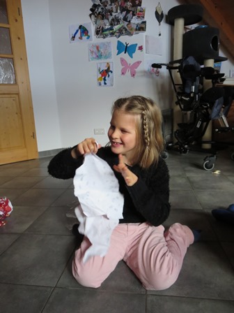 Jolina besucht an 5 Tagen die Woche die Regens-Wagner-Schule in Rottenbuch und an 3 Nachmittagen deren Tagesstätte. Sie hat für vormittags und nachmittags eine Individualbegleitung an ihrer Seite. Morgens wird sie um 7:15 Uhr mit einem Kleinbus abgeholt und kommt mittags um 12:30 Uhr oder nachmittags um 16:45 Uhr heim. Und…wir sind begeistert, Jolina fühlt sich sehr wohl dort. Es sind alle sehr nett und mit ihren 6 Schulkameraden versteht sie sich wohl auch ganz gut. Jolina ist das einzige Mädl in der Klasse, aber wer gedacht hat, da kommt eine süße Prinzessin Lillifee, hat sich getäuscht. Denn unsere Ronja Räubertochter mischt den Laden ganz schön auf.