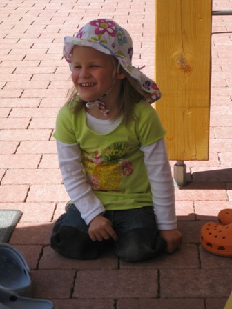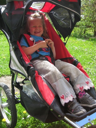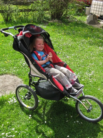 Wir haben gar keine Zeit mehr zum Schreiben, weil wir so viel draußen sind. Das Wetter ist herrlich. Endlich haben wir auch die Erkältungsphase überstanden. Tamino und ich sind jetzt schon 4 Wochen gesund und wollen das auch bleiben. Meine Mama wollte von der Krankenkasse einen neuen Rehabuggy für mich haben, weils mir im Zwillingswagen wirklich langsam zu ungemütlich wird. Bin jetzt schon 99,5cm groß und wiege 13,9kg. Leider bezahlt uns die Krankenkasse den Kangoo nicht und selber kaufen ist zu teuer (4500€). Aber Mama hatte eine gute Idee. Sie hat nen Jogger aus Amerika gekauft, da hab ich mind. noch ein Jahr Platz und der ist echt gemütlich. Und auch die ganzen Schotterwege machen mir in dem Wagen nichts aus. Nächstes Jahr versuchen wir dann nochmal den Wagen zu bekommen. Gestern waren wir wieder mal im SPZ und beim Röntgen meiner Hüften. Mama hat gesagt sie hat a bisserl Bauchweh was da raus kommt. Wir bekommen in 2-3 Wochen einen Brief. Heute hab ich neue Orthesen bekommen. Die sind toll, schauen spitze aus und sind super bequem. Ich krieg auch noch Schuhe dazu, die sind aber leider noch nicht da. Zum schlafen soll ich bald auch solche Dinger bekommen, aber das muss ich mir erst noch überlegen ob ich die will!! Ich bin grad manchmal ziemlich genervt und muss oft schimpfen wenn Mama immer so blöde Geräusche macht die ich nicht hören will. Auch das ständige Füttern und Löffeln nervt echt, ich versuche dann immer meine Haare vors Gesicht zu ziehn und mit meinen Händen den Löffel weg zu schieben. Wenn gar nichts mehr hilft dann zwick ich oder hau ich, aber irgendwie hört trotzdem keiner drauf was ich will. Ich versteh nicht warum ich ständig essen und trinken muss??? Mama und Papa planen gerade einen Bau , ich hab gehört, dass sie mir einen Aufzug bauen wollen, weil sie mich nicht immer die Treppe hoch tragen wollen. Es waren schon ganz viele Leute da, die ihre Geschichten zum Aufzug erzählt haben. Habs noch nicht ganz verstanden warums so eilig ist, der Aufzug soll noch vor September eingebaut werden, ich glaube wir bekommen dann Besuch von einem Baby. Weiß auch nicht so wirklich was die meinen, alle schauen immer Mamas dicken Bauch an und freuen sich. Ich jedenfalls versteh nicht was da los ist. Der Kindergarten ist immer noch toll!!!! Es macht mir unglaublich viel Spaß, vor allem wenn ich mit den Mädels in der Puppenecke spielen kann. Jetzt darf ich auch schon fast so lange wie die andern bleiben, aber dann bin ich schon müde und geh dann gleich nach dem Mittagessen um 12 Uhr ins Bett. So das wars dann erst mal wieder von mir.