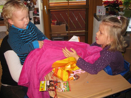 Ihren Geburtstag am 23.11. haben wir dieses Jahr ganz ruhig angehen lassen. Es war eigentlich ein sehr schöner Tag und Jolina war super drauf. Wir hatten das Gefühl, dass sie ganz genau wusste dass es ihr Tag war. Für Tim haben wir natürlich auch wieder 4 Luftballons in den Himmel fliegen lassen. Am Abend bekamen dann Jolina und Tamino Fieber. Jolina bekam bevor sie ins Bett ging ein Zäpfchen und hat dann zwar unruhig aber doch recht gut geschlafen. Um 5Uhr ist sie dann aufgewacht, hat erbrochen und angefangen zu krampfen. Dann wieder das volle Programm mit Notarzt, Krankenwagen und Intensivstation. Jolina bekam wieder sehr viele Medikamente, um den Krampf zu durchbrechen. Sie war 5 Tage lang total abgeschossen, ist aber heute Gottseidank wieder die Alte. Wir haben demnächst einen Termin im Krankenhaus mit EEG, MRT und einem Gespräch bei dem wir gemeinsam überlegen, wie man mit diesen Krisensituationen besser umgehen kann.
