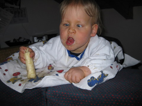Jolina hat zum ersten Mal alleine eine Banane gegessen.