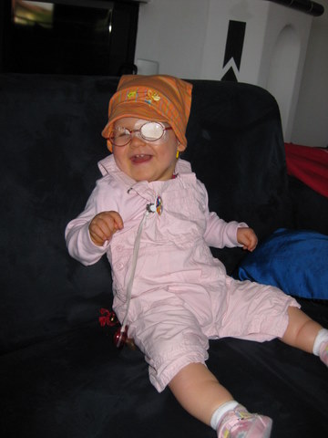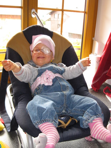 11.07. Jolina ist jetzt 77cm groß und gibt wenn man es möchte Bussis, natürlich nur bei Mama und Papa. Sie hat auch eine neue Lieblingsbeschäftigung. Zunge gaaaaanz weit rausstrecken. LEIDER aber lässt sie ihr Augenpflaster und Brille gar nicht mehr an, es hilft nichts mehr, man kann sie gar nicht mehr ablenken, sogar die Sehförderung müssen wir ohne machen. Die kleine Kröte kann richtig stur sein.