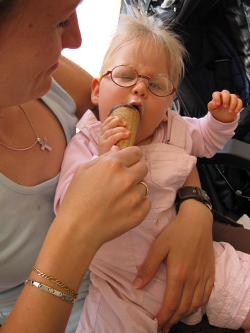 Ihre neue Leidenschaft ist Eis aus der Waffel und am besten ist es wenn sie es selber halten darf.