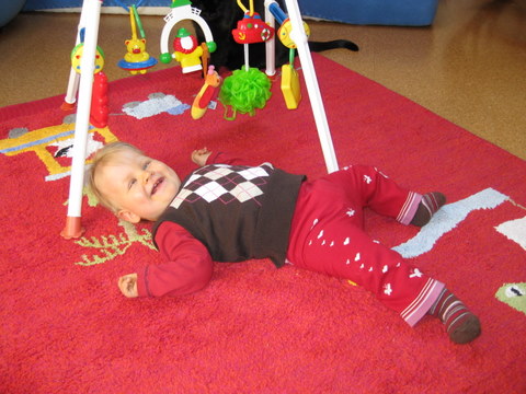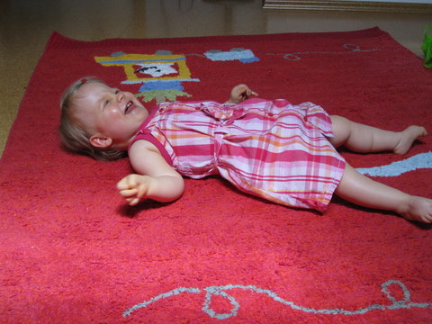 21.6. Jetzt hat sie es raus, seit heute dreht sich Jolina regelmäßig von Rücken auf Bauch und freut sich riesig drüber.