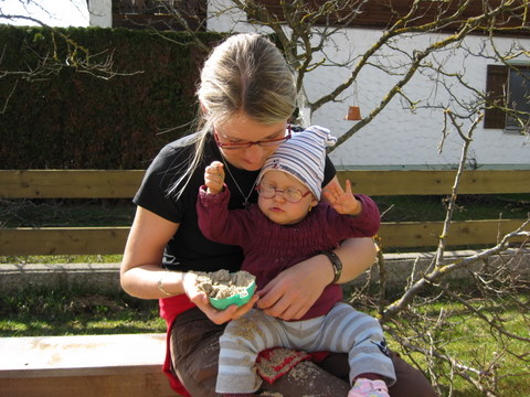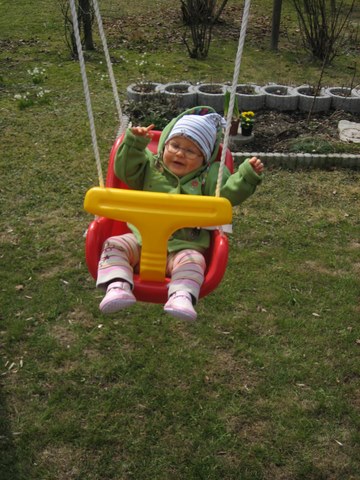Jolina sammelt ihre ersten Erfahrungen mit Schaukel und Sandkasten. Es gefällt ihr sehr gut. Seit sie tagsüber so wenig schläft geht sie abends um 19 Uhr ins Bett. Das Einschlafen ist zwar immer noch nicht ganz einfach, dauert aber nicht mehr lange und wenn sie schläft, dann schläft sie meistens durch.